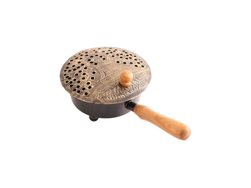 Bronzovo-zlatá kadidelnice s dřevěnou rukojetí
