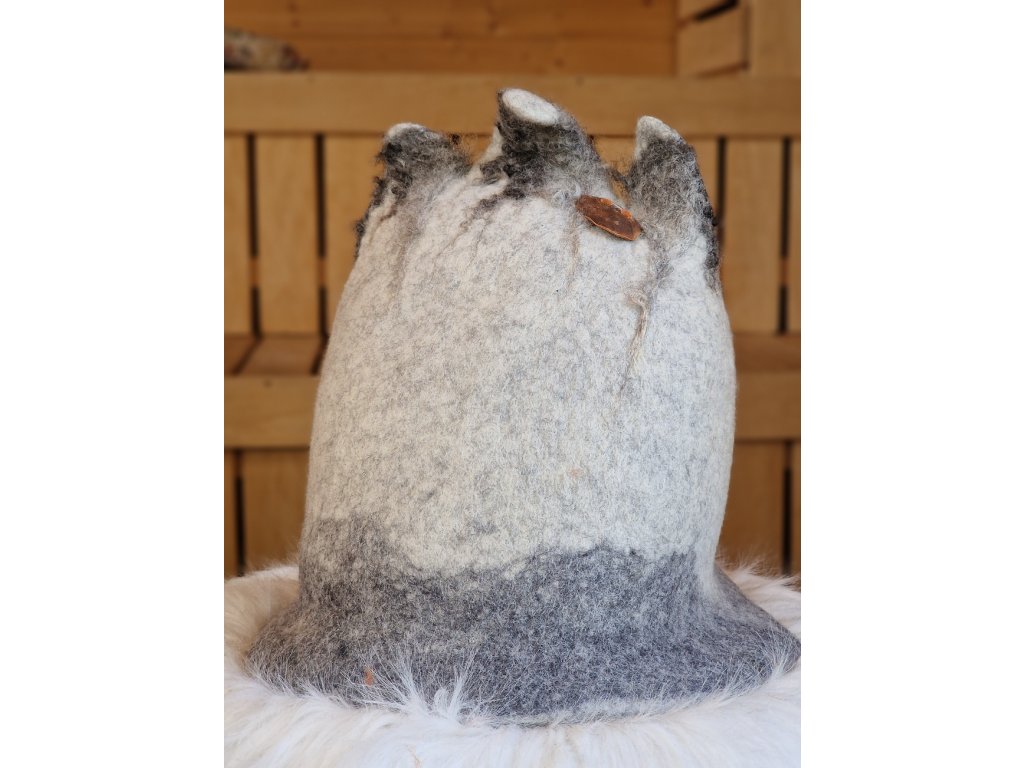 Klobouk do sauny (saunová čepice) v originálním provedení. Tradiční, ruční výroba ze 100% přírodní ovčí vlny. Perfektní ochrana vaší hlavy při saunování.
