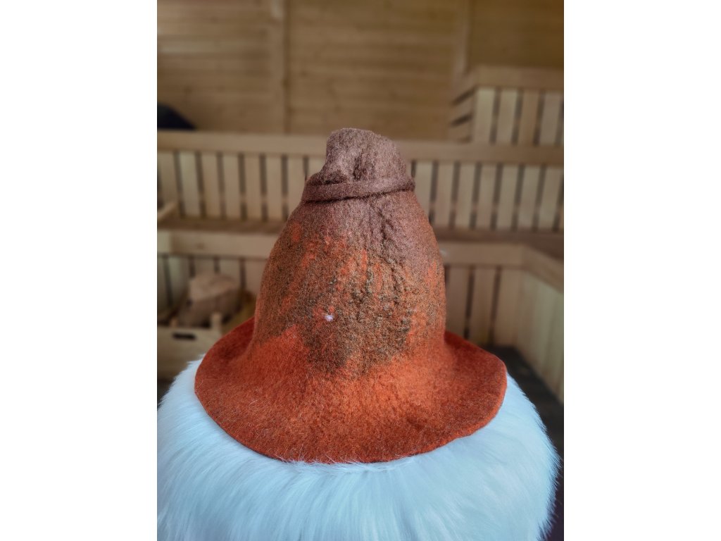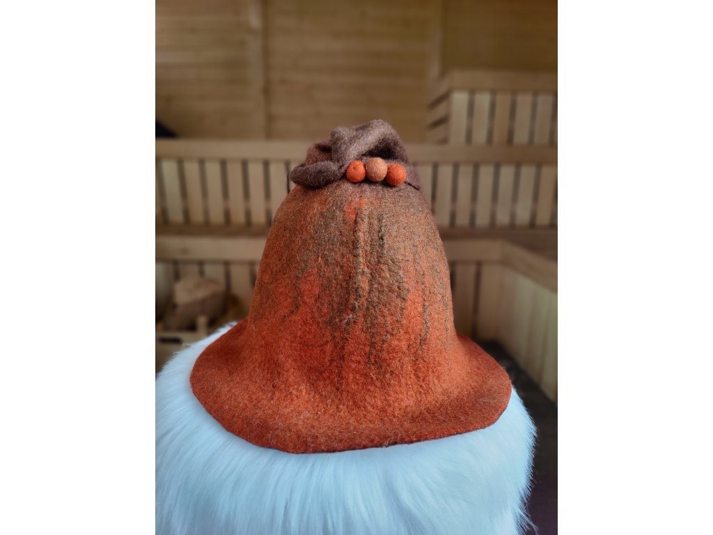 Klobouk do sauny (saunová čepice) v originálním provedení. Tradiční, ruční výroba ze 100% přírodní ovčí vlny. Perfektní ochrana vaší hlavy při saunování.