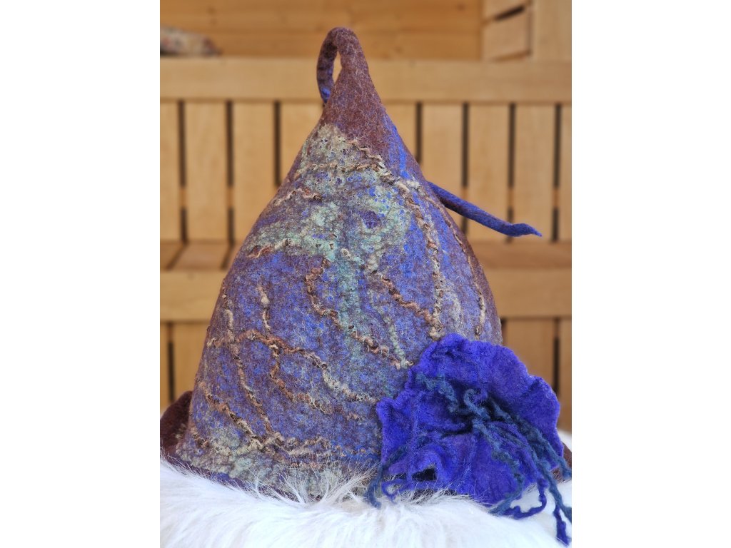 Klobouk do sauny (saunová čepice) v originálním provedení. Tradiční, ruční výroba ze 100% přírodní ovčí vlny. Perfektní ochrana vaší hlavy při saunování.