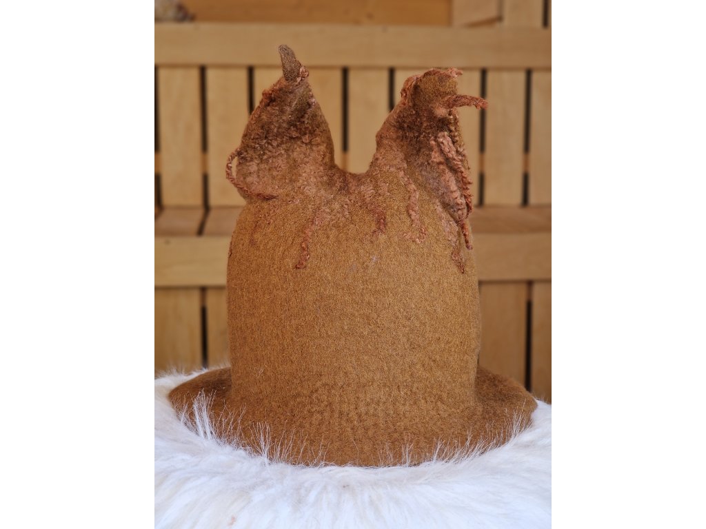 Klobouk do sauny (saunová čepice) v originálním provedení. Tradiční, ruční výroba ze 100% přírodní ovčí vlny. Perfektní ochrana vaší hlavy při saunování.