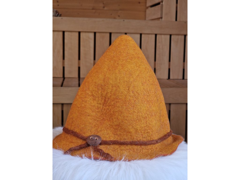 Klobouk do sauny (saunová čepice) v originálním provedení. Tradiční, ruční výroba ze 100% přírodní ovčí vlny. Perfektní ochrana vaší hlavy při saunování.
