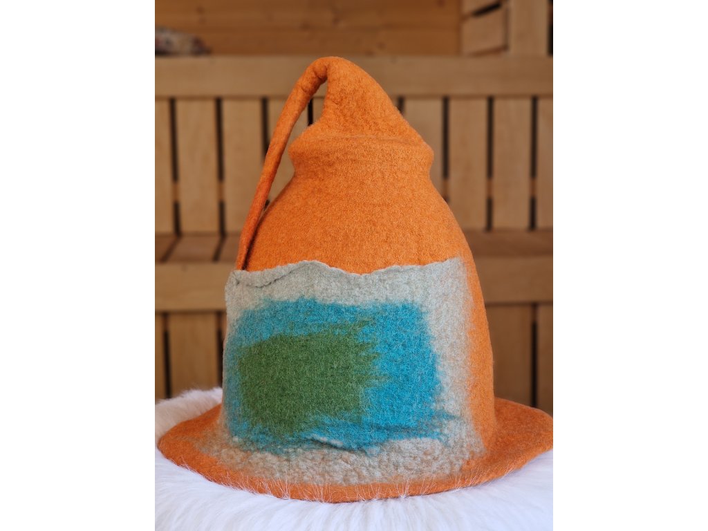 Klobouk do sauny (saunová čepice) v originálním provedení. Tradiční, ruční výroba ze 100% přírodní ovčí vlny. Perfektní ochrana vaší hlavy při saunování.