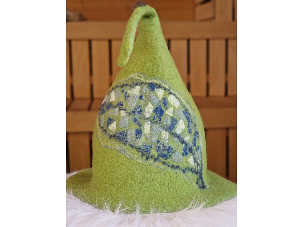 Klobouk do sauny (saunová čepice) v originálním provedení. Tradiční, ruční výroba ze 100% přírodní ovčí vlny. Perfektní ochrana vaší hlavy při saunování.