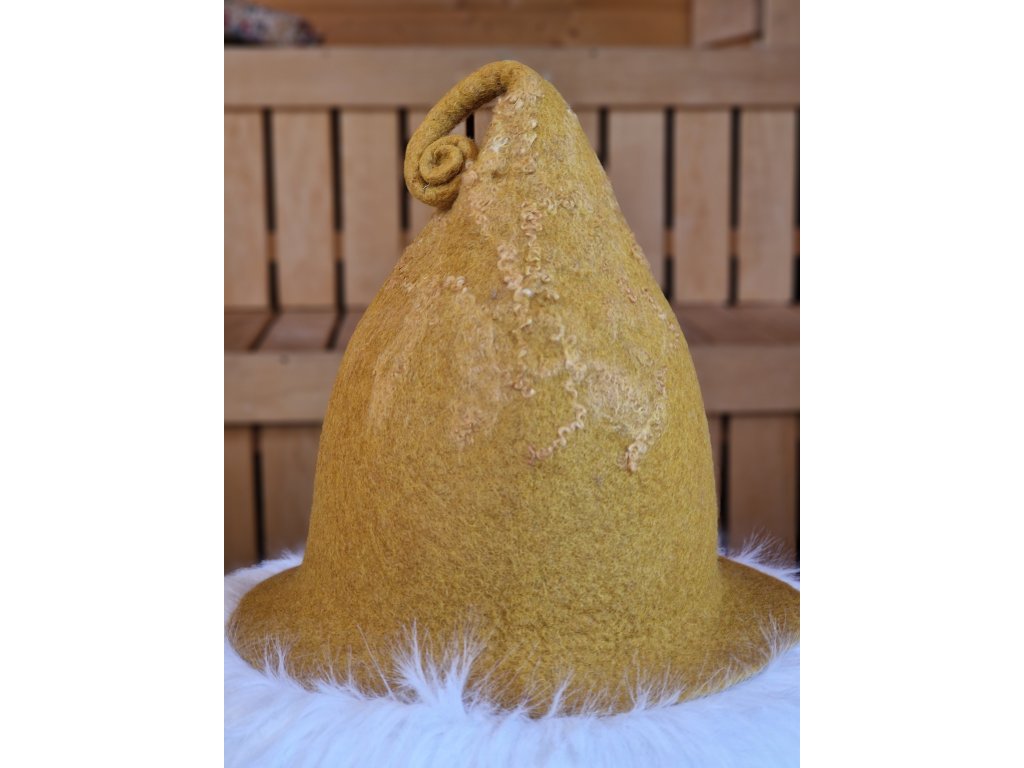 Klobouk do sauny (saunová čepice) v originálním provedení. Tradiční, ruční výroba ze 100% přírodní ovčí vlny. Perfektní ochrana vaší hlavy při saunování.