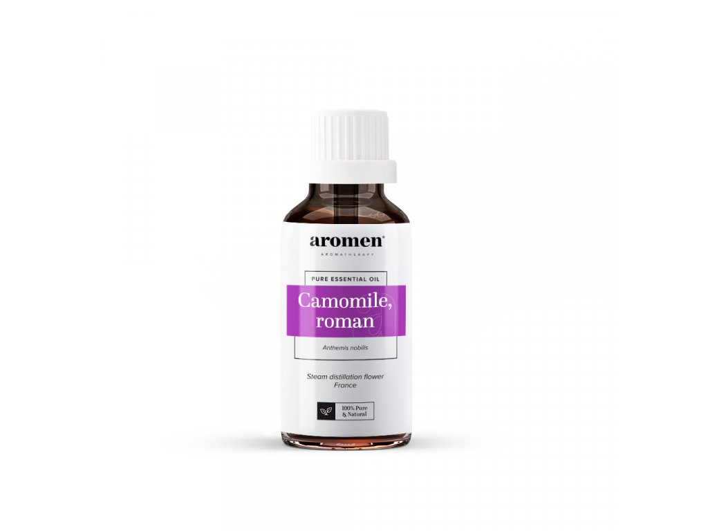 Esenciální olej z heřmánku římského rozjasní váš den svou nádhernou vůní. Olej se získává z rostlin s bílými pupeny původními v Evropě a pro své výrazné zdravotní přínosy se používá již desítky let. Jeho sladké, květinové a ovocné vrchní tóny jsou vyváženy těžkými podtóny, které zlepšují kvalitu spánku a zmírňují úzkost. Esenciální olej z heřmánku římského z aromenu je 100% čistý.