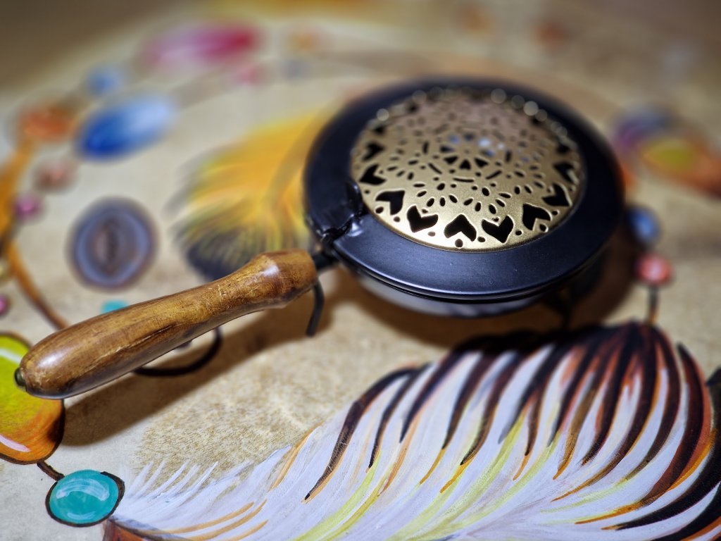Očistěte prostory, použijte na kouřové rituály. Pokud musíte kadidelnici přenášet, tato je na nošení prostorem velmi vhodná.