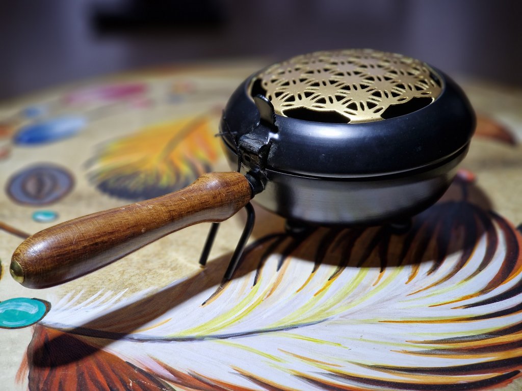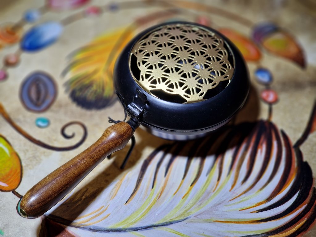 Očistěte prostory, použijte na kouřové rituály. Pokud musíte kadidelnici přenášet, tato je na nošení prostorem velmi vhodná.