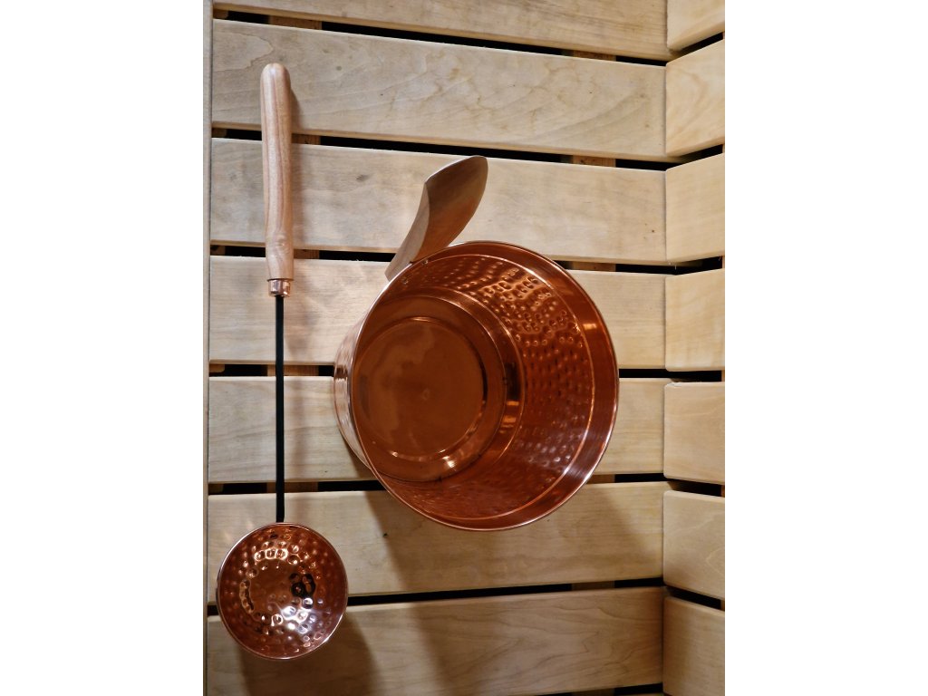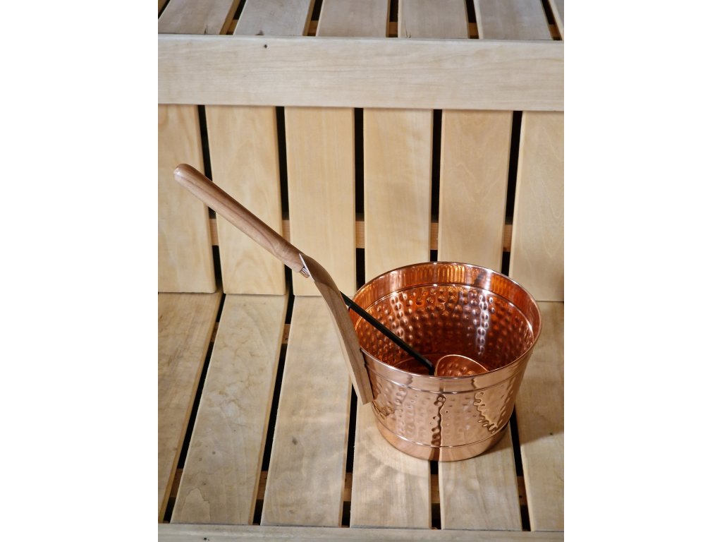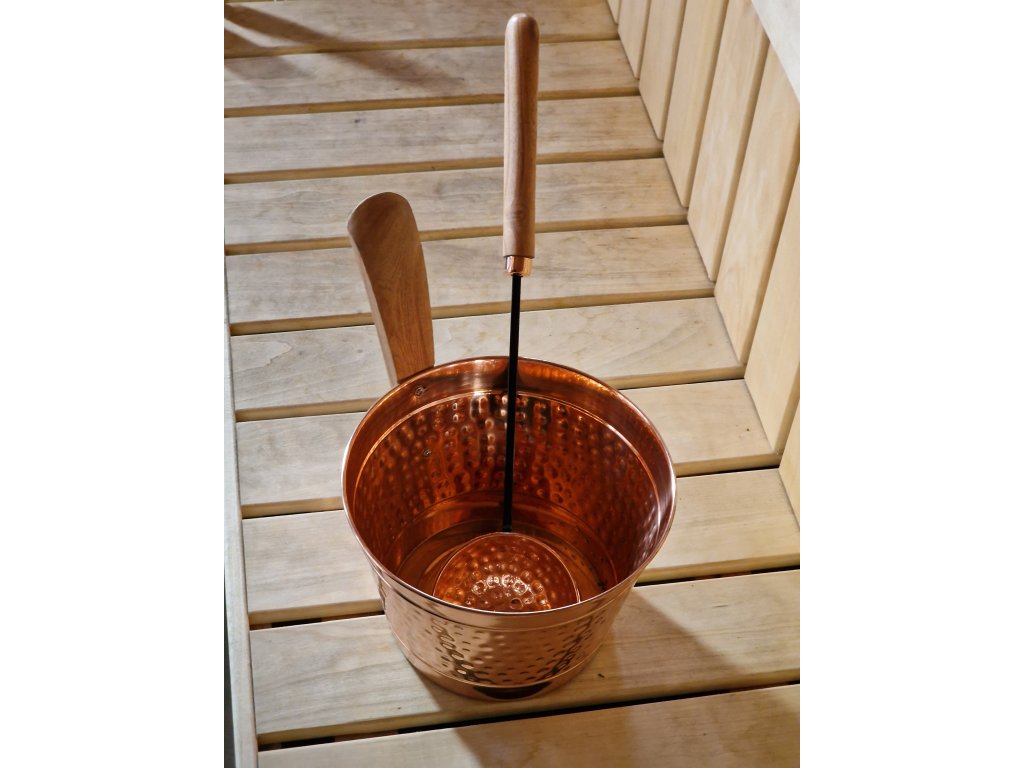 K vědru doporučujeme také další vybavení - např. vějíř nebo ručník pro parní nárazy a rozmávání horkého vzduchu nad kamny po celé sauně a na saunaře. A samozřejmostí je také přírodní aromaterapie - přírodní éterické oleje (Aromen, Bergila), bylinky, hydroláty atd.