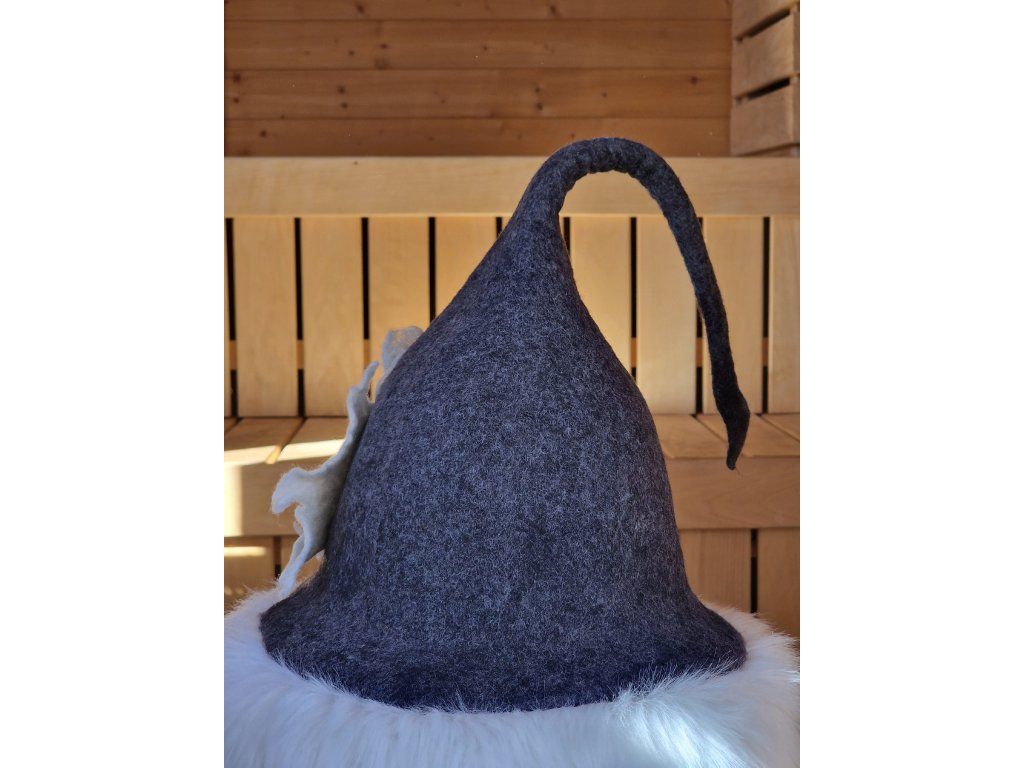 Originální saunový klobouk z 100% přírodní ovčí vlny, vytvořený tradiční ruční technikou. Poskytuje vynikající ochranu hlavy při saunování a zároveň si udržuje svůj tvar díky pevnějšímu, kvalitně zpracovanému materiálu.