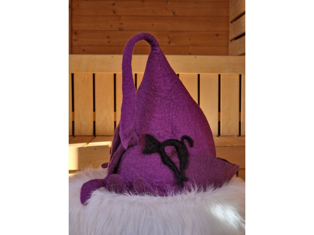 Originální saunový klobouk z 100% přírodní ovčí vlny, vytvořený tradiční ruční technikou. Poskytuje vynikající ochranu hlavy při saunování a zároveň si udržuje svůj tvar díky pevnějšímu, kvalitně zpracovanému materiálu.