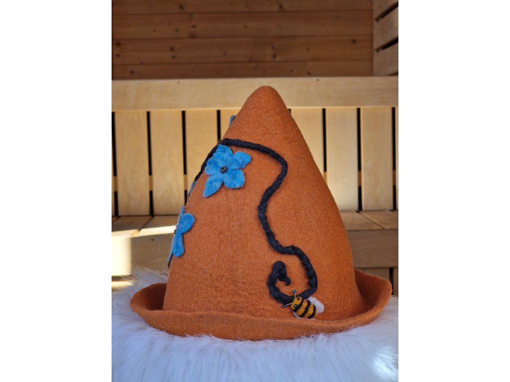 Originální saunový klobouk z 100% přírodní ovčí vlny, vytvořený tradiční ruční technikou. Poskytuje vynikající ochranu hlavy při saunování a zároveň si udržuje svůj tvar díky pevnějšímu, kvalitně zpracovanému materiálu.