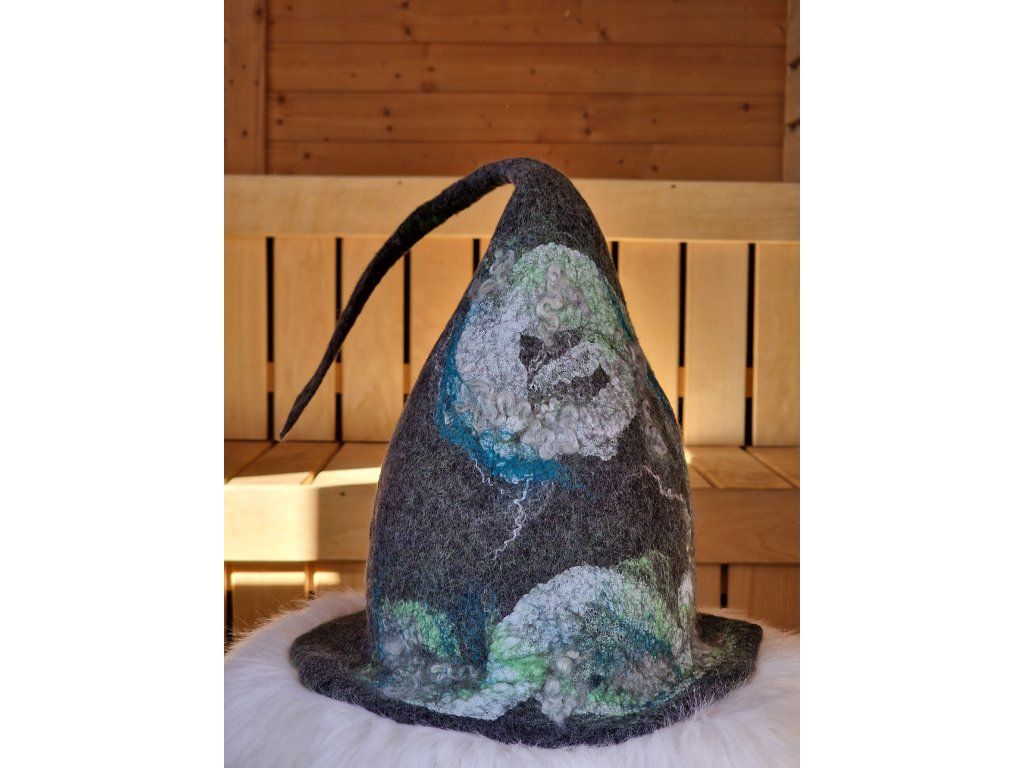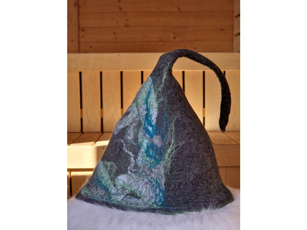 Originální saunový klobouk z 100% přírodní ovčí vlny, vytvořený tradiční ruční technikou. Poskytuje vynikající ochranu hlavy při saunování a zároveň si udržuje svůj tvar díky pevnějšímu, kvalitně zpracovanému materiálu.