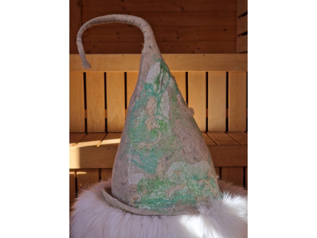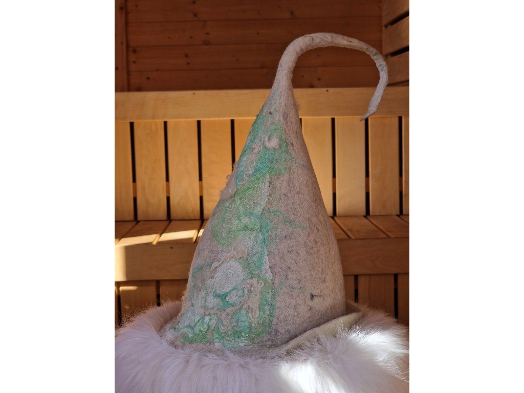 Originální saunový klobouk z 100% přírodní ovčí vlny, vytvořený tradiční ruční technikou. Poskytuje vynikající ochranu hlavy při saunování a zároveň si udržuje svůj tvar díky pevnějšímu, kvalitně zpracovanému materiálu.