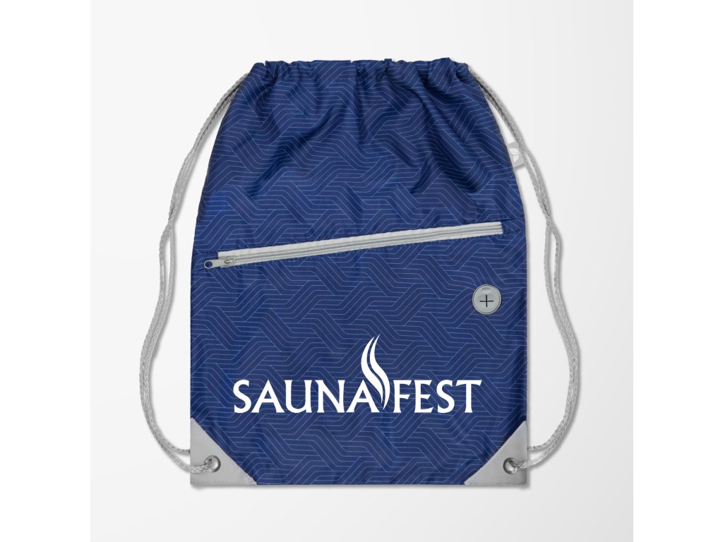 nebo s logem SaunaFest v modré barvě s moderním vzorováním.